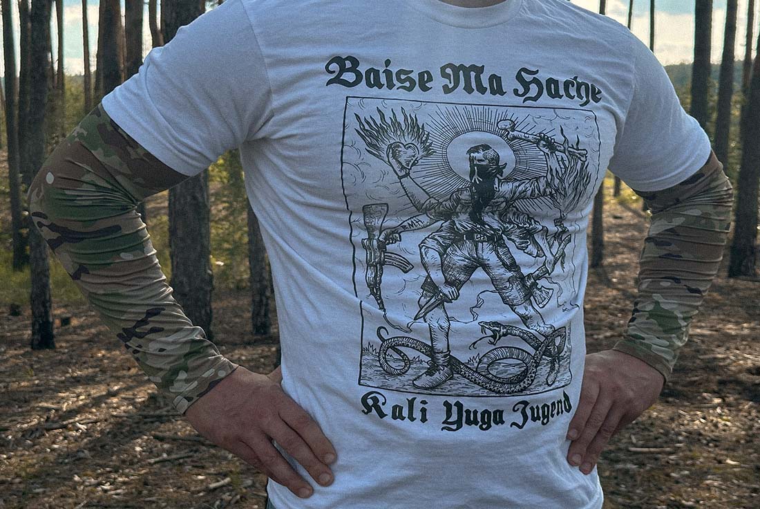 Baise Ma Hache — a French right-wing black metal band with unconventional music and a strong provocative vibe in their merch and album designs, such as the illustration “Kali-Yuga Jugend”. Baise Ma Hache supports Ukraine’s fight against neo-Bolshevism.