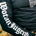 Minimalist emblem of the god Wotan on the chest and a large WotanJugend print on the sleeve.