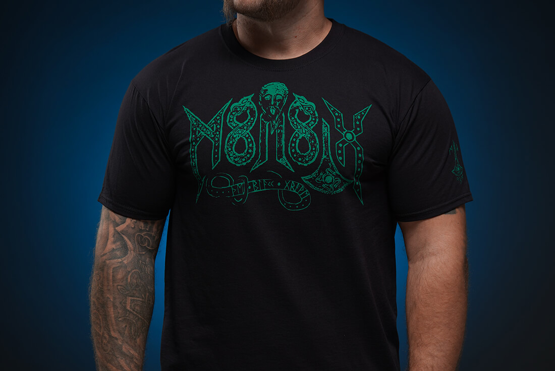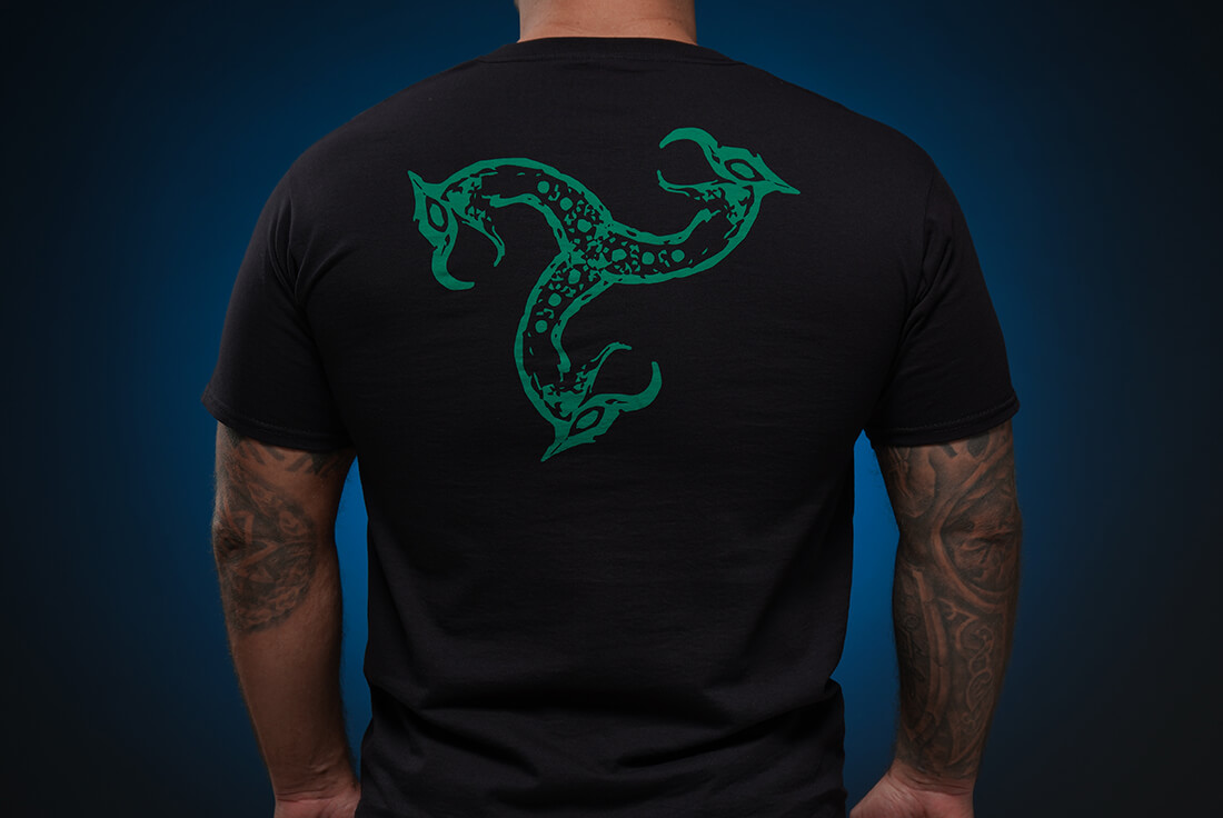 Новий логотип “Чорна Могила” на грудях, Знак Мертвих на спині. Високоякісна чорна бавовна (Fruit of the Loom).